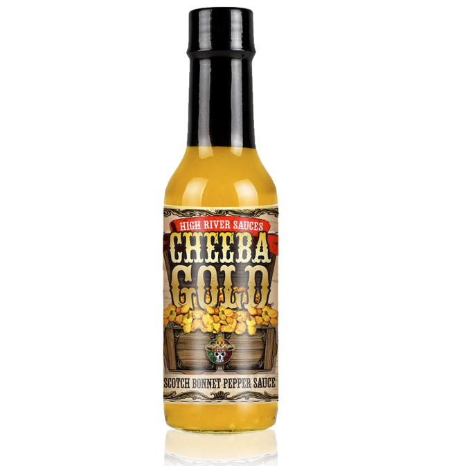 Η High River Sauces Cheeba Gold πλημμυρίζει από τροπικά αρώματα συνοδευόμενη από φρέσκιες νησιώτικες νότες γεμάτες νοστιμιά και χρησιμοποιεί αρώματα και καρυκεύματα όπως το κάρυ και σε συνδυασμό με την φρουτένια απόλαυση του γλυκού ροδάκινου μπορεί να ξετρελάνει τον ουρανίσκο σου!