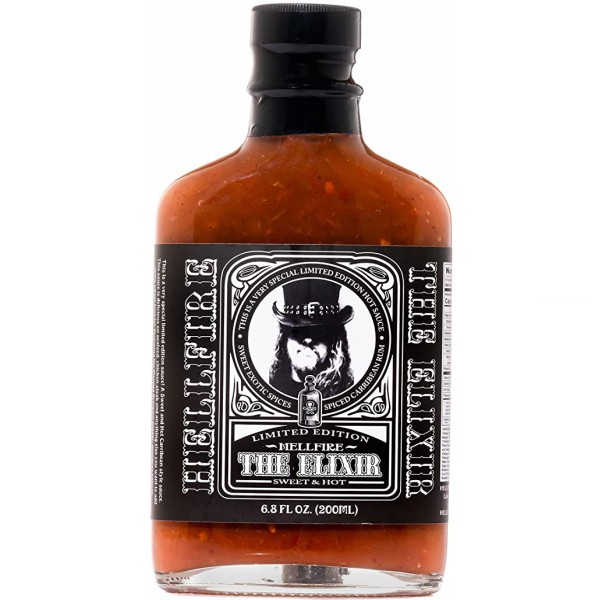 Η Hellfire The Elixir Limited Edition Hot Sauce είναι μια βραβευμένη σάλτσα καυτερής πιπεριάς με γεύση καραϊβικής . Έχει κερδίσει το πρώτο βραβείο στην κατηγορία “Φρουτώδης Καυτερή Σάλτσα” στο NYC Hot Sauce Expo! Η σάλτσα είναι νόστιμη σε θαλασσινά, κοτόπουλο, μοσχάρι, χοιρινό, τακο ή σε οτιδήποτε άλλο θέλετε να προσθέσετε λίγη γλυκιά και καυτερή γεύση.