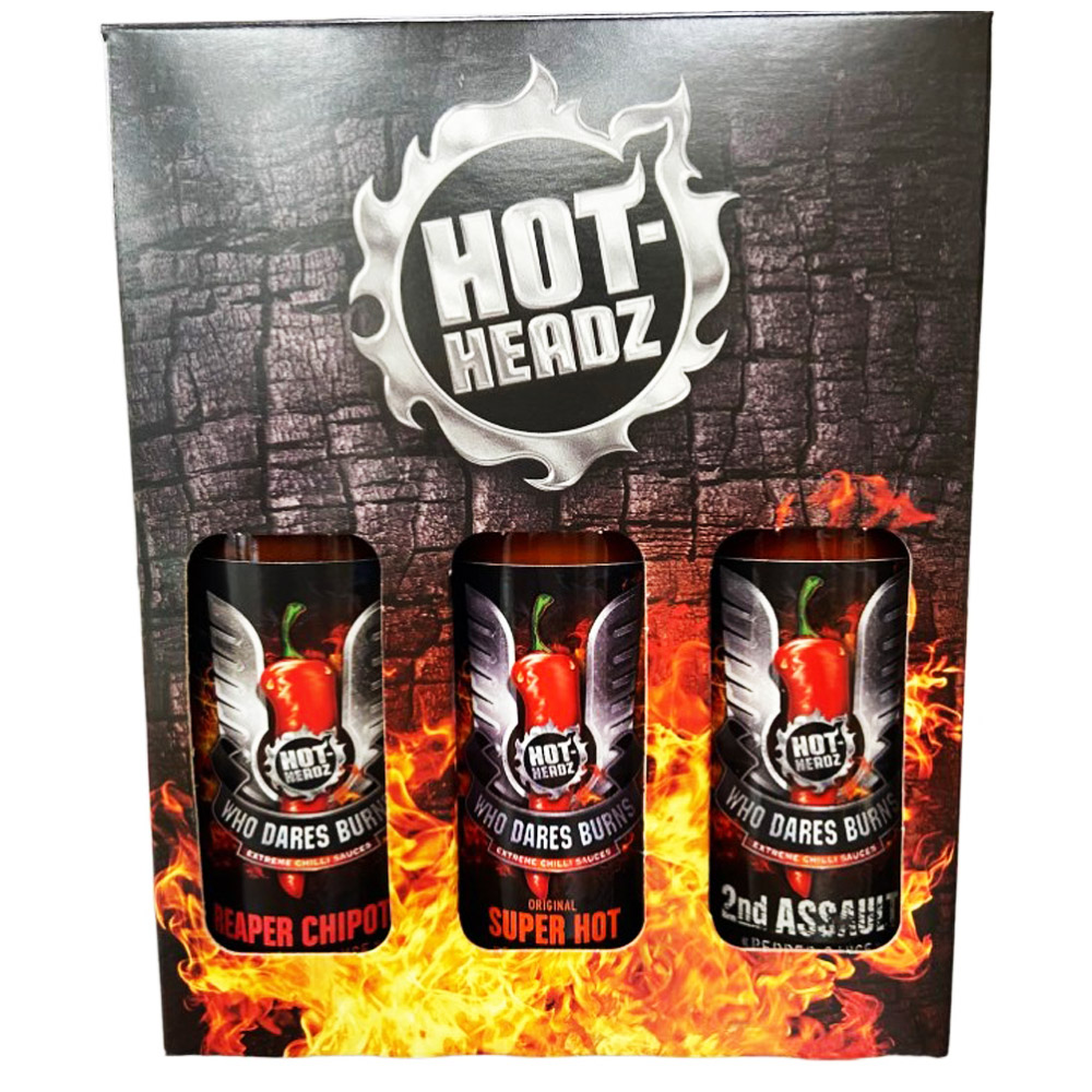 - 1 X Hot Headz – Who Dares Burns – H Δημοφιλής Υπερκαυτερή Σάλτσα ( Μια φλογερή επίθεση καυτερών πιπεριών και καθαρού αποστάγματος που ανεβάζει το κάψιμο στα ύψη).