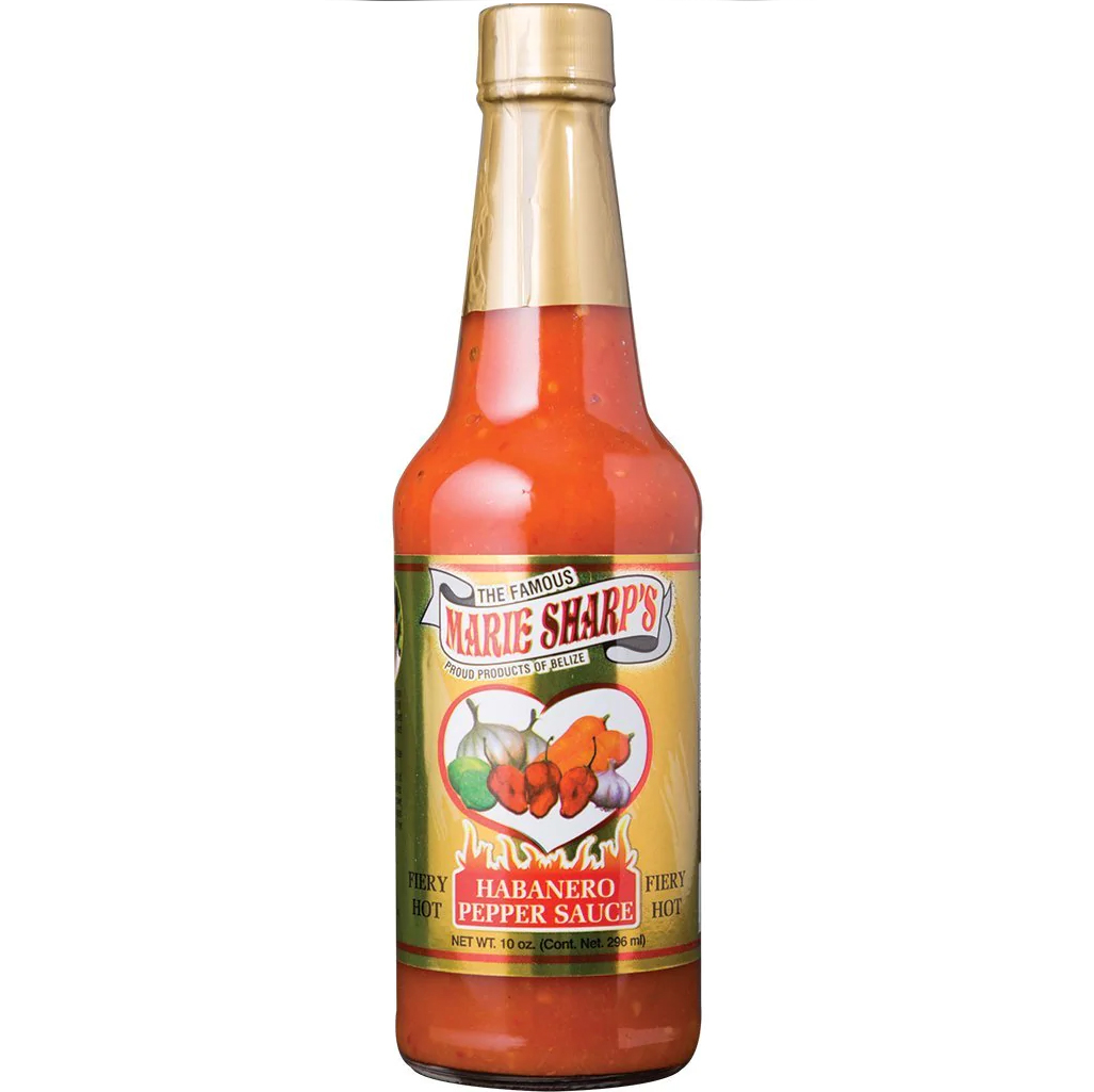 Φρέσκο κόκκινο πιπέρι Habanero , καρότα ψιλοκομμένα στο χέρι, φυσικό ξίδι, ψιλοκομμένα στο χέρι λευκά κρεμμύδια, θαλασσινό αλάτι, φρεσκοστυμμένος χυμός Key Lime και φρέσκο σκόρδο – Φτιαγμένο στο Μπελίζ της Κεντρικής Αμερικής. Το Fiery Hot (Gold Label) είναι μια από τις πρωτότυπες συνταγές της Marie Sharp με βάση το καρότο και συνεχίζει να είναι best seller.