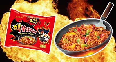 To μυστικό των συγκεκριμένων νουντλς(noodles) βρίσκεται στην σάλτσα που δίνεται μαζί στο πακέτο η οποία περιέχει απόσταγμα καυτερών πιπεριών το οποίο κανει τα νούντλς σούπερ καυτερά!